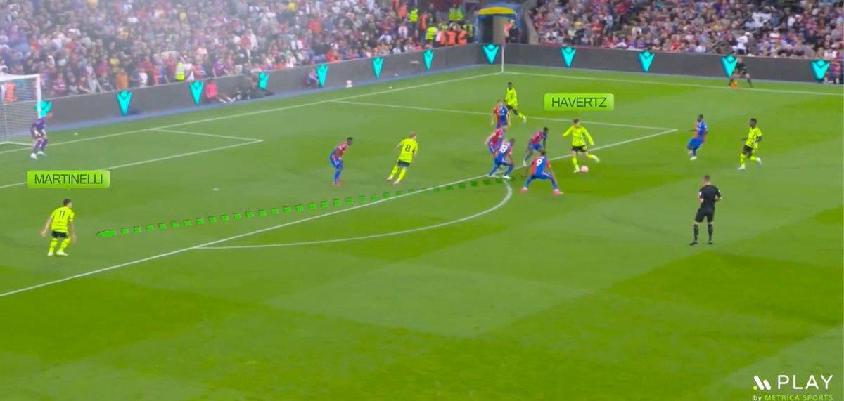 If the wingers (ex: Martinelli) decided to help Havertz, one of Palace’s FBs (Ward) became free so that Palace could progress.