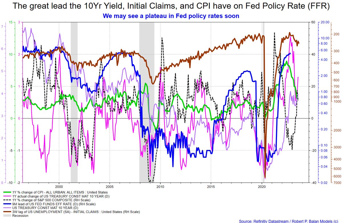 In fact, if the lead of changes on Initial Jobless Claims, 10Yr Yield and CPI over changes of the FFR is still extant, then we could see a plateau on FFR rates very soon.