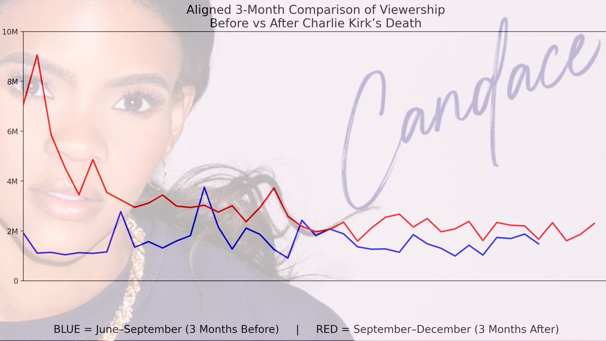🚨How much has Candace Owens’ audience INCREASED since Charlie Kirk’s death? Examining the Audience Growth Before & After Charlie Kirk’s Death: June–Sept vs. Sept–Dec: 🧵👇