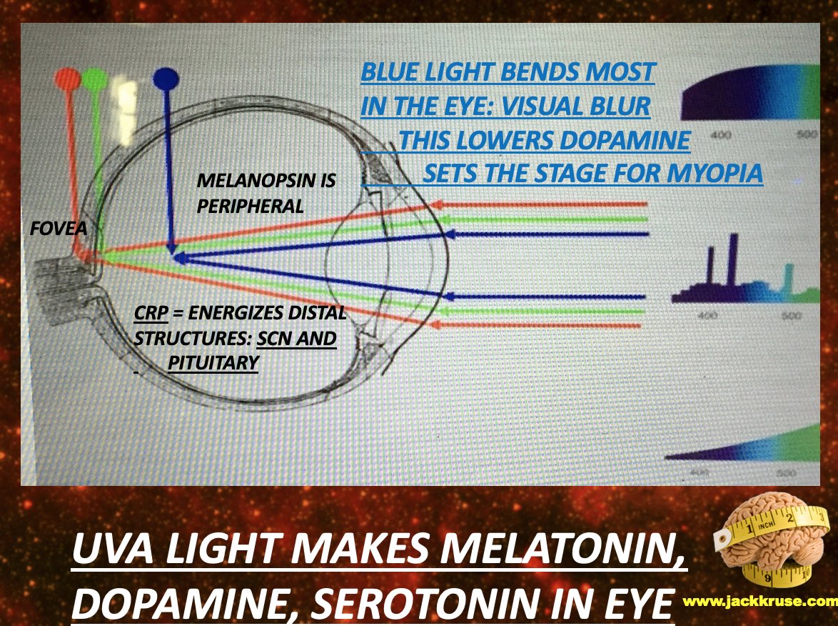 12. Sharpen our memories, and fight inflammatory disease by improving proton tunneling in enzymes. They help you resist high blood pressure. POMC is increased by UV light transformed inside our cells. POMC creates ACTH which forms cortisol. The amount of ACTH and cortisol must be quantized to your light environment. ALAN ruins this effect. It also lowers alpha MSH release and your neuroectoderm melanin semiconductors fail over time. This ruins how your cells operate at peak levels. Melanin turns on the immune system to block systemic (body-wide) inflammation which is a major factor in aging and poor health.