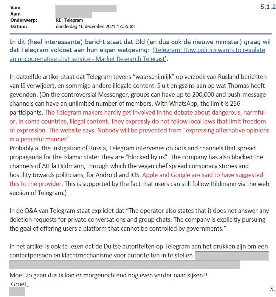 Maatregelen werden voorbereid als Telegram niet zou buigen voor het ministerie van informatie.