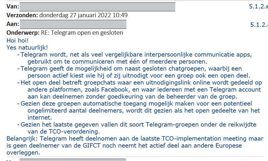 Gelukkig. We mogen wel infiltreren in Telegramgroepen die open zijn.