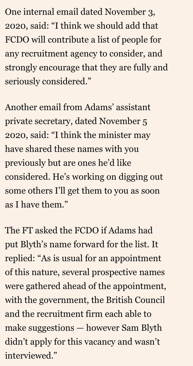 and a few weeks later he popped up on an FCDO list of four suggested candidates to be chief executive of the British Council?