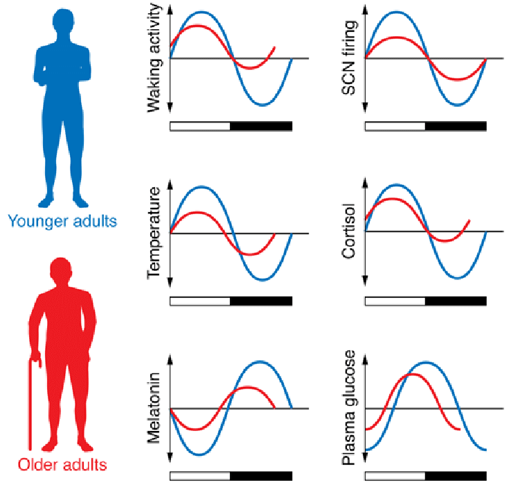 With age, the body's circadian rhythms go through many changes: