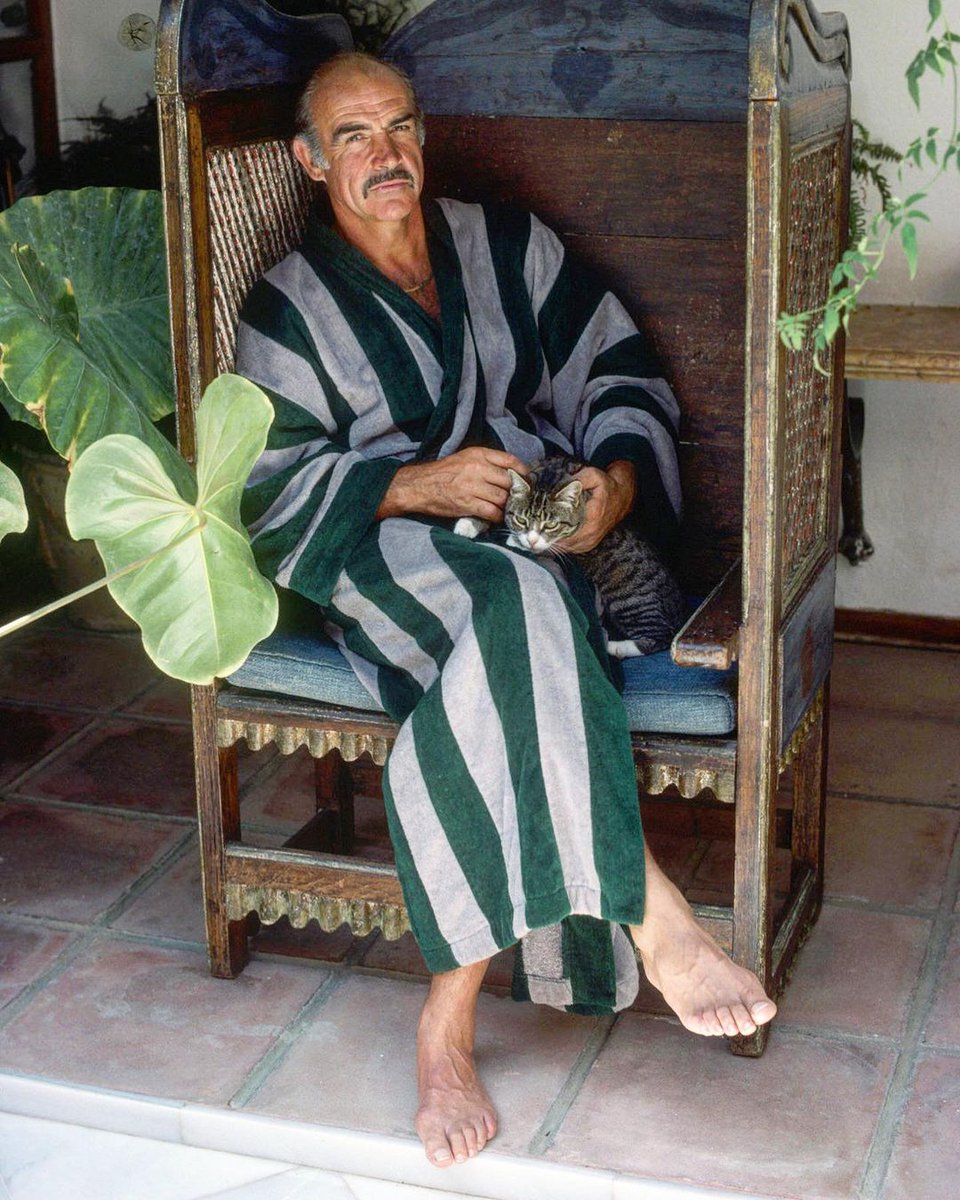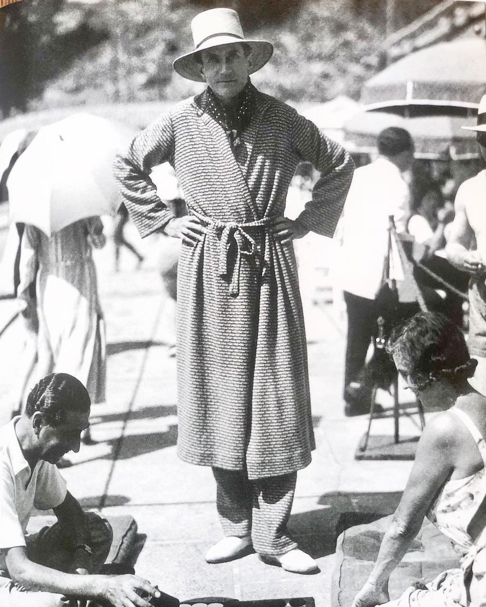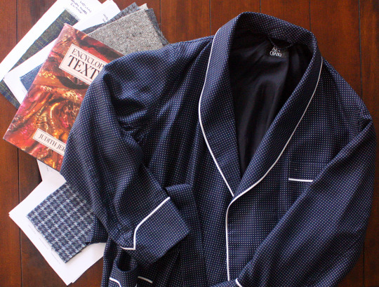 wealthy men in the past wore dressing gowns or robes at home, often with a belt tied around the waist, sometimes decorated with a little tassel at the end. made from wool or silk, these would be worn before getting dressed for the day. would be paired with thin-soled slippers