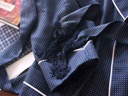 a few years ago, i had a robe made by one of my tailors using a run of Adamley silk. i wanted hand-knotted tassels at the end of the belt (most tassels now are machine-made). Budd in London had a small box of handmade tassels left—the last woman to make them had just retired