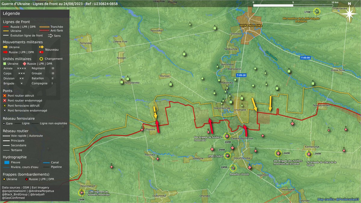 10 km2 au profit de 🇷🇺 dans les directions #Kupyansk, #Kramatorsk, #Pokrovsk, #Vuhledar👇