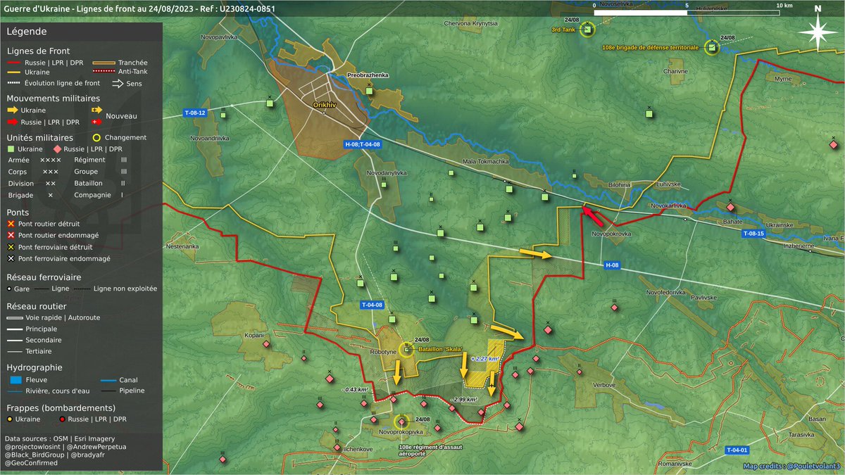 (i) Dans l’axe central et celui de #Robotyne (10 km, sud), 🇺🇦 poursuivent vers le sud au contact de la seconde ligne de défense 🇷🇺