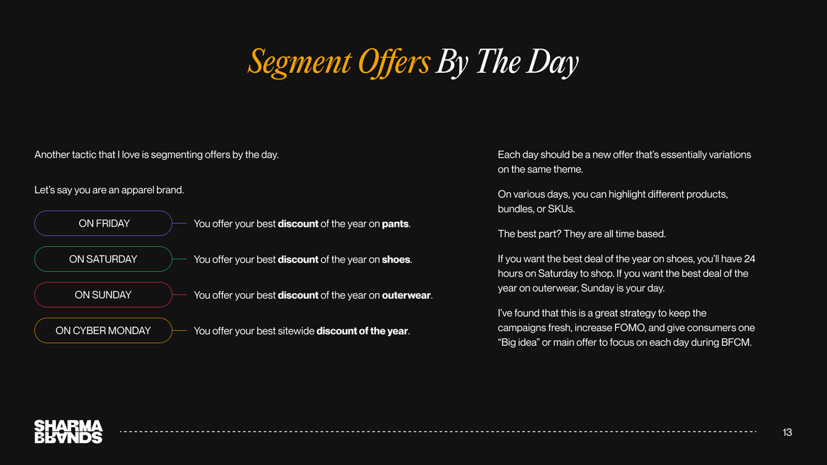 This way you have a new offer for EACH DAY of the BFCM weekend.