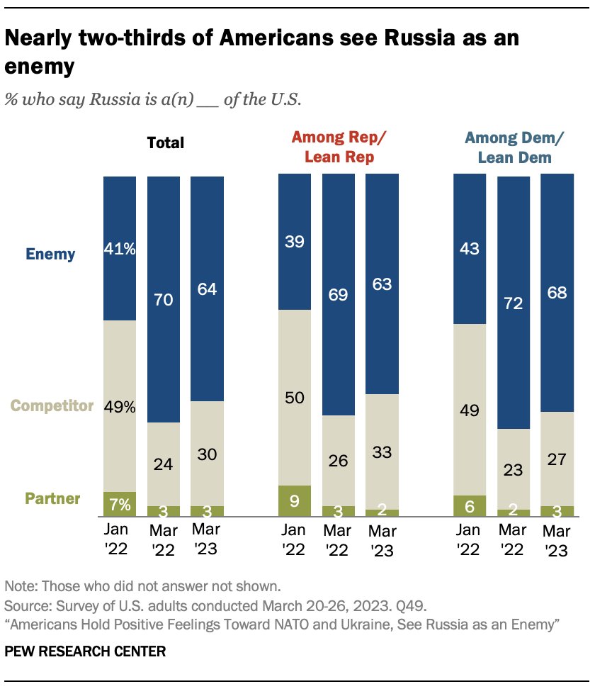 Another factor is the notion that the US can somehow reach a new rapproachment with Russia. Most experts say this was the underlying cause that enabled Putin's war. Voters now have very much soured on this old mantra./23