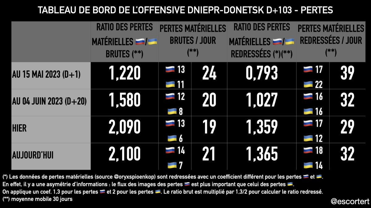 Le tour de force réalisé par 🇺🇦est de maintenir l' initiative offensive principale en infligeant plus de pertes à l'ennemi qu'il n'en a