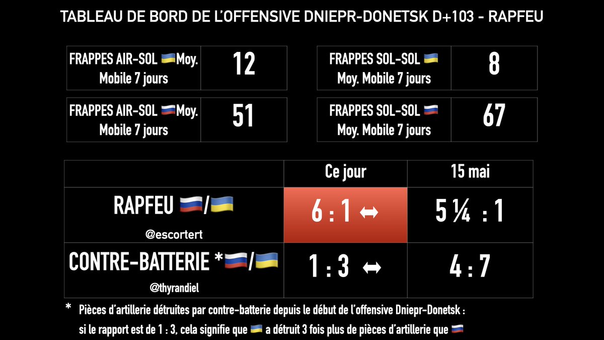 La contre-batterie 🇺🇦 et le casse-briques sur les arrières ne seront pas parvenus à briser la domination des feux 🇷🇺, écrasante à 6 :1👇