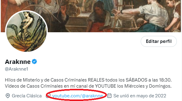Si os ha gustado, compartidlo y si sois fans del TRUE CRIME, os invito a mi canal de YOUTUBE donde narro casos criminales. Tenéis el enlace a mi canal en mi perfil de Twitter: