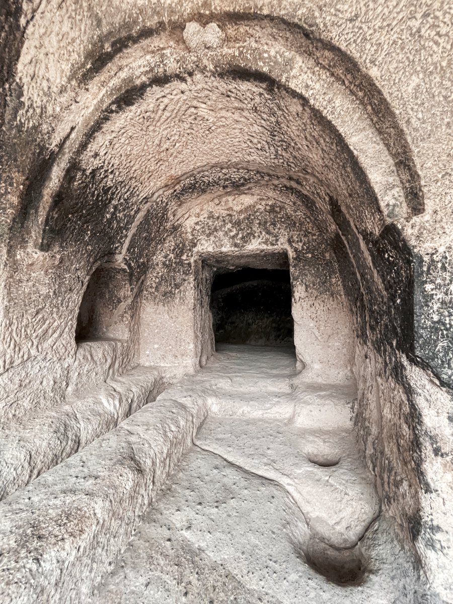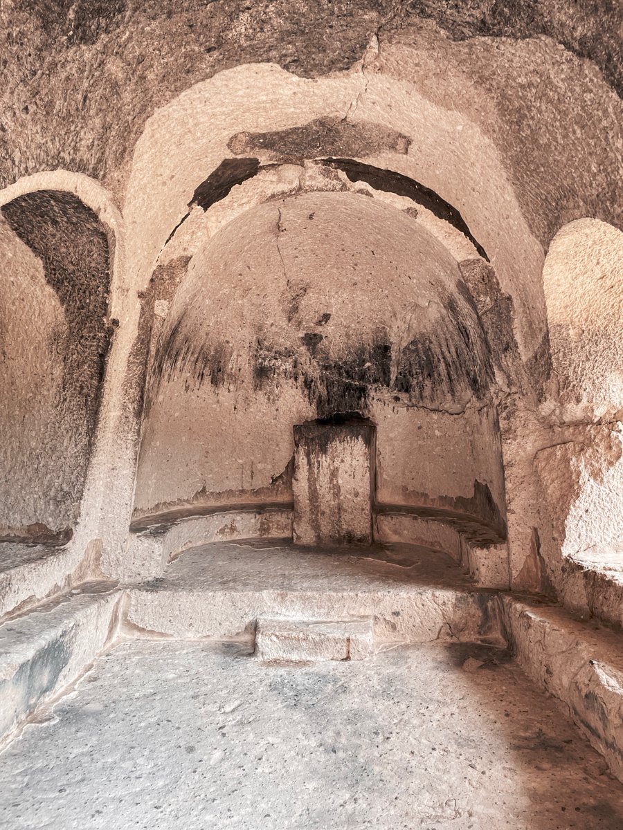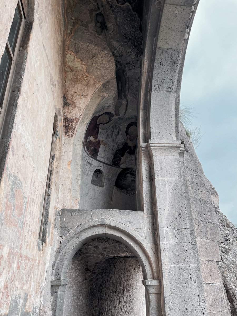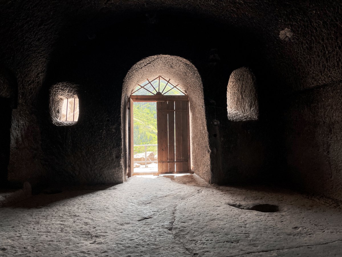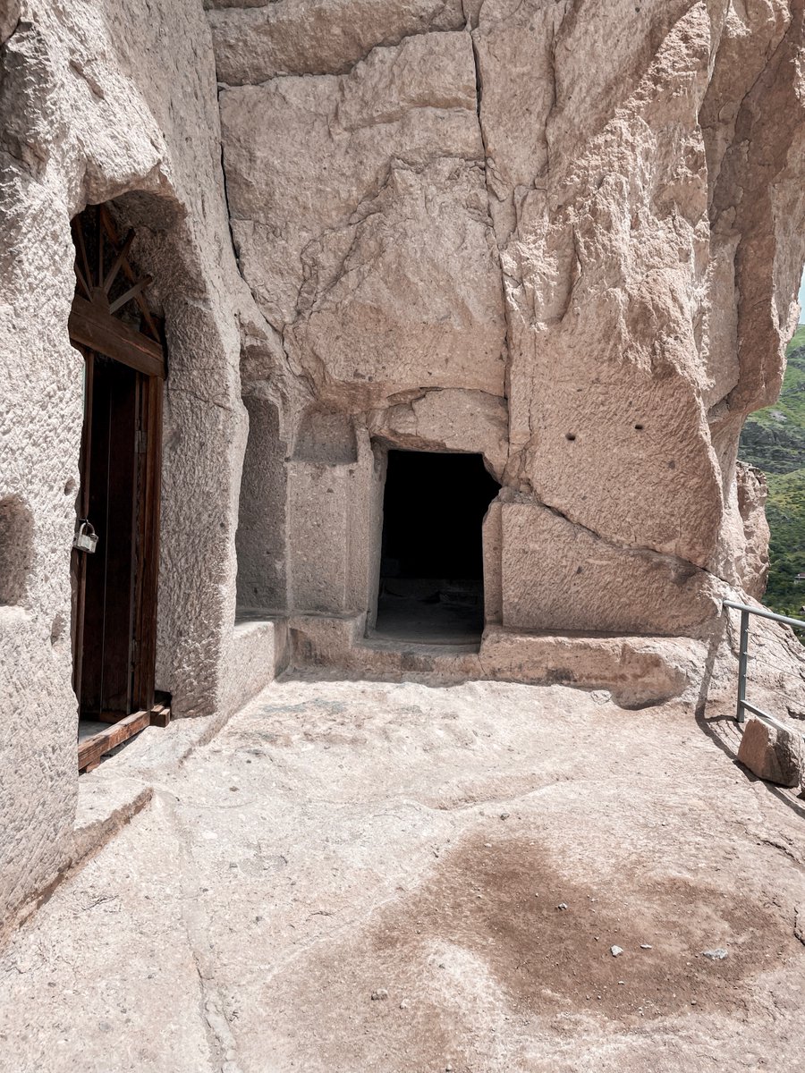 Justo en la entrada me encuentro un monje del monasterio, uno de los últimos cinco que aún quedan aquí que recién abría las puertas de la iglesia. Es lo último que queda de esa época de oro, porque la historia de Vardzia no fue tan buena como lo esperaban sus constructores.