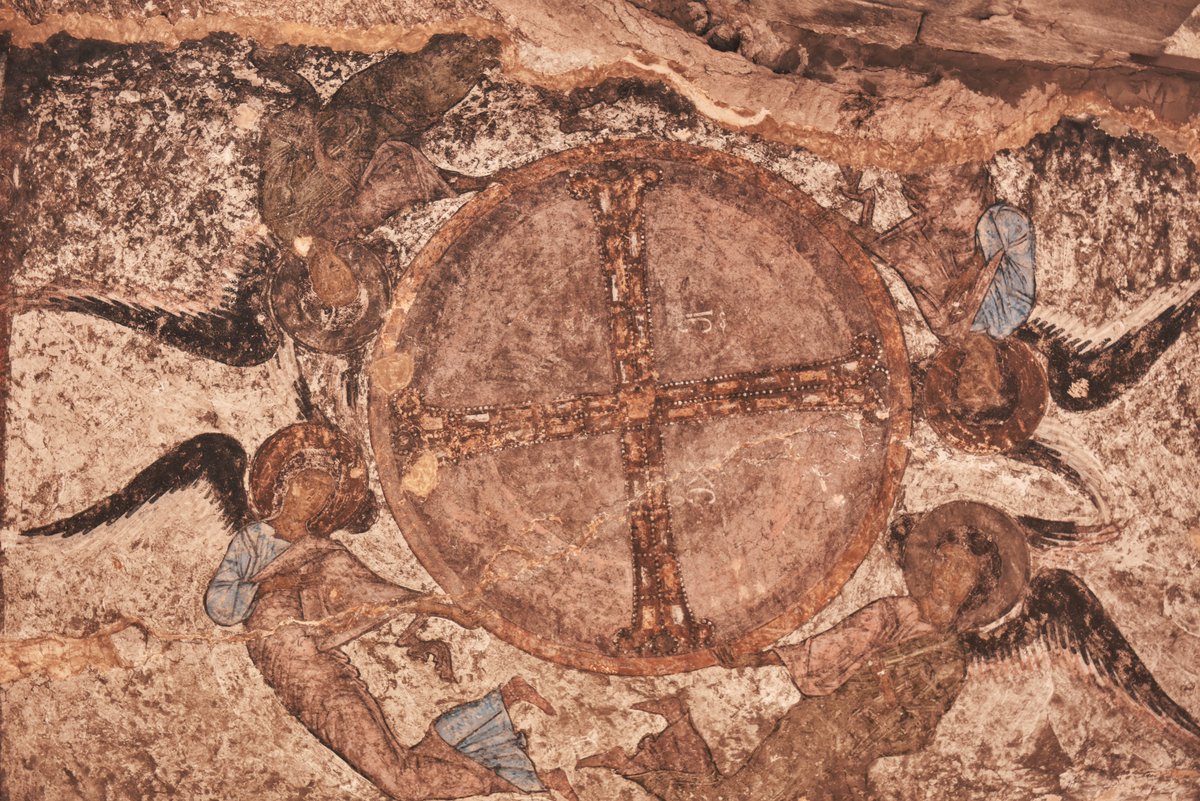 ¿Qué sería de un monasterio sin su iglesia? En el corazón del complejo, sujeta por apenas unos arcos está excavada la Iglesia de la Dormición. El corazón de esta "Minas Tirith" está forrado en murales que contienen escenas en secuencia de la vida y muerte de Cristo.