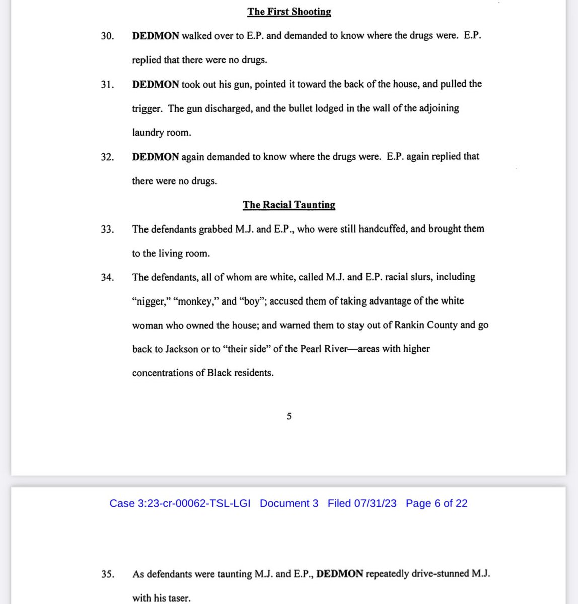 3) According to the charging documents for which all six cops plead guilty to all charges, the police then fired a gun into the wall of their home and taunted the handcuffed victims with racial threats before tasing them more.
