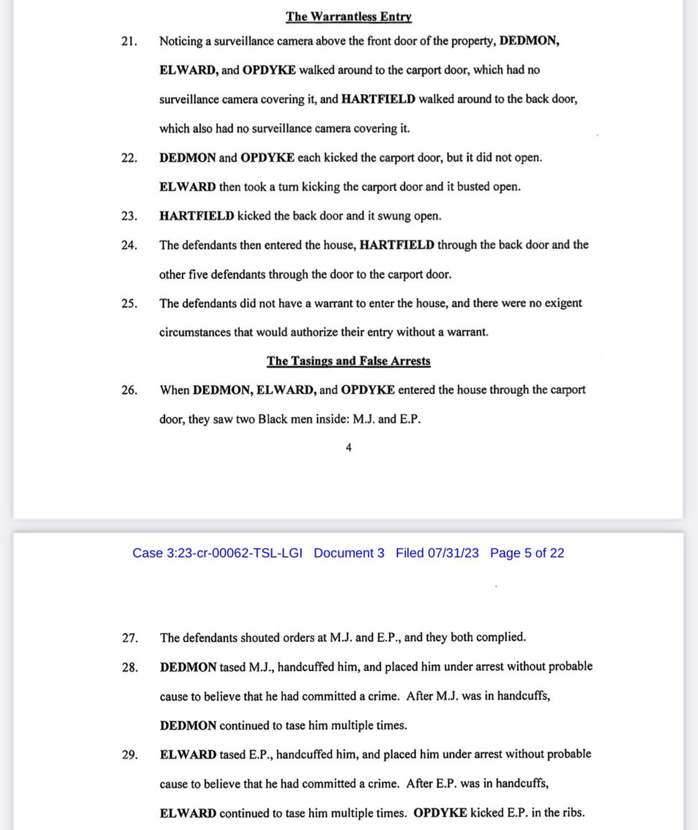 2) According to the charging document, for which the six police officers have now plead guilty to all charges, they entered the home without a warrant and tased and kicked the complying victims even after handcuffing them.