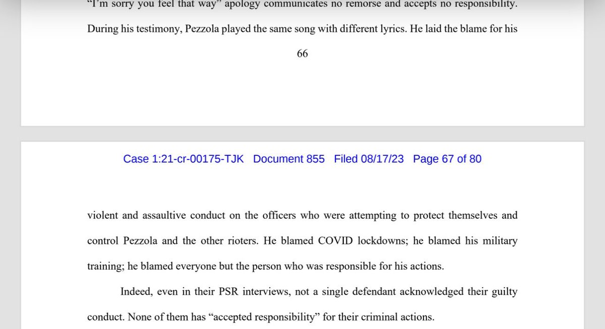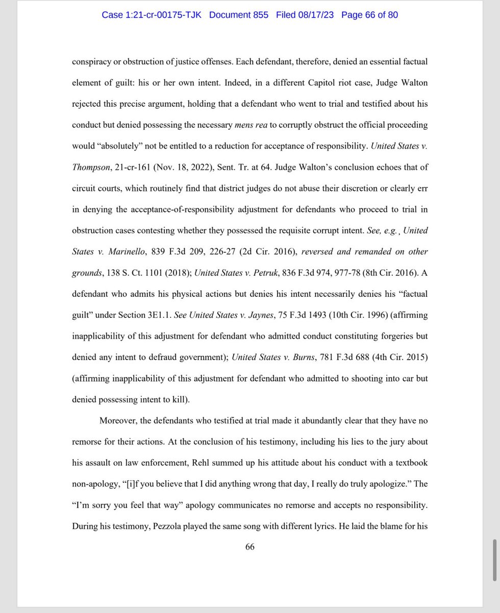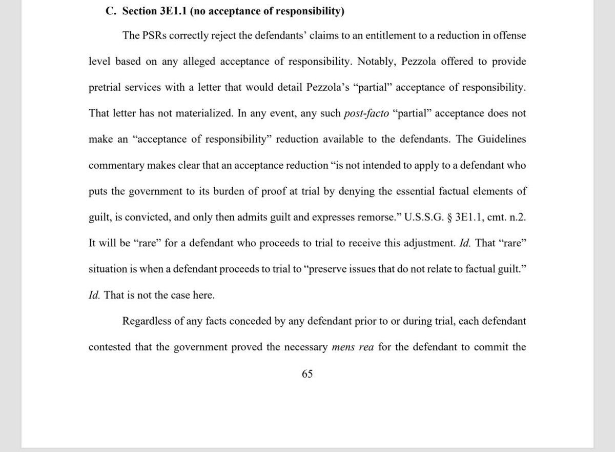 3) The government claims in their case for two to three decades for each of the five convicted Proud Boys that they should get no credit for acceptance of responsibility.
