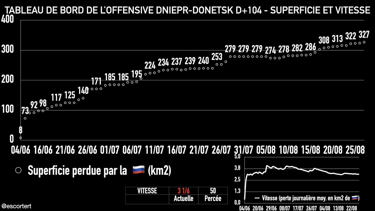 Avec les espaces de manoeuvre créés par la traversée de la 1ère ligne 🇷🇺, le gradient de vitesse de reconquête 🇺🇦 devrait (et doit !) augmenter dans les prochains jours