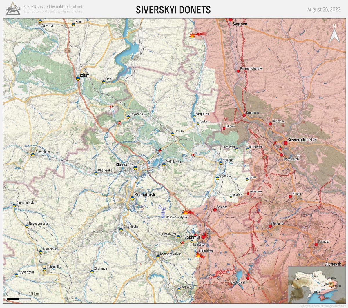 Dans l’axe #Klischiivka (7 km, sud-ouest), 🔴 + 🟦 dans la colonie