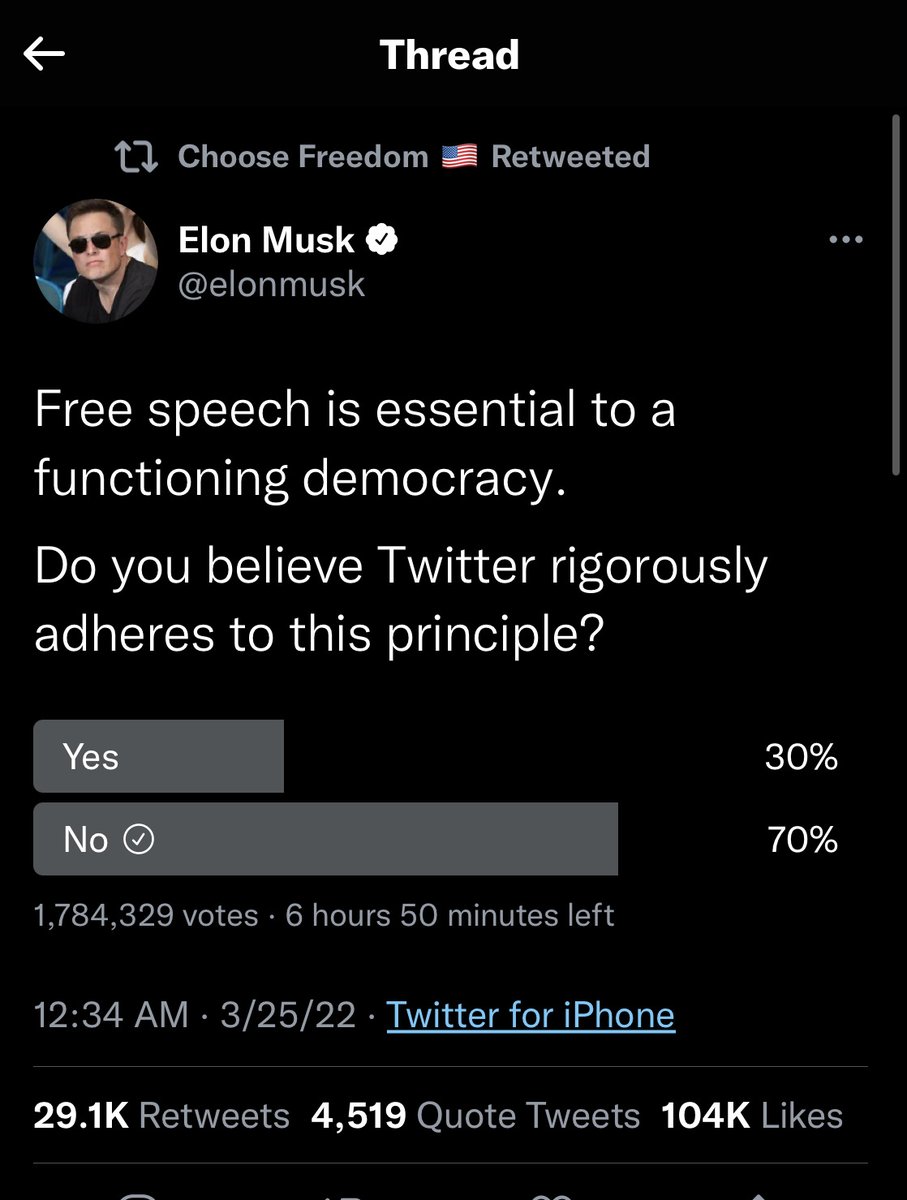 Looks like about 2/3rds of the population feels that Twitter is NOT upholding free speech. Id say thats probably an accurate look at reality.