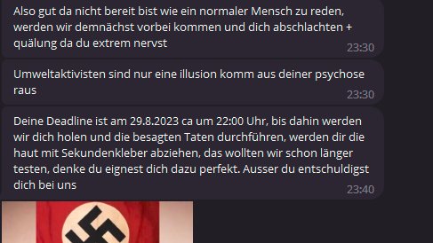 Diese und anderen Morddrohungen per Nachrichten + Anrufen habe ich vergangene Woche bekommen.