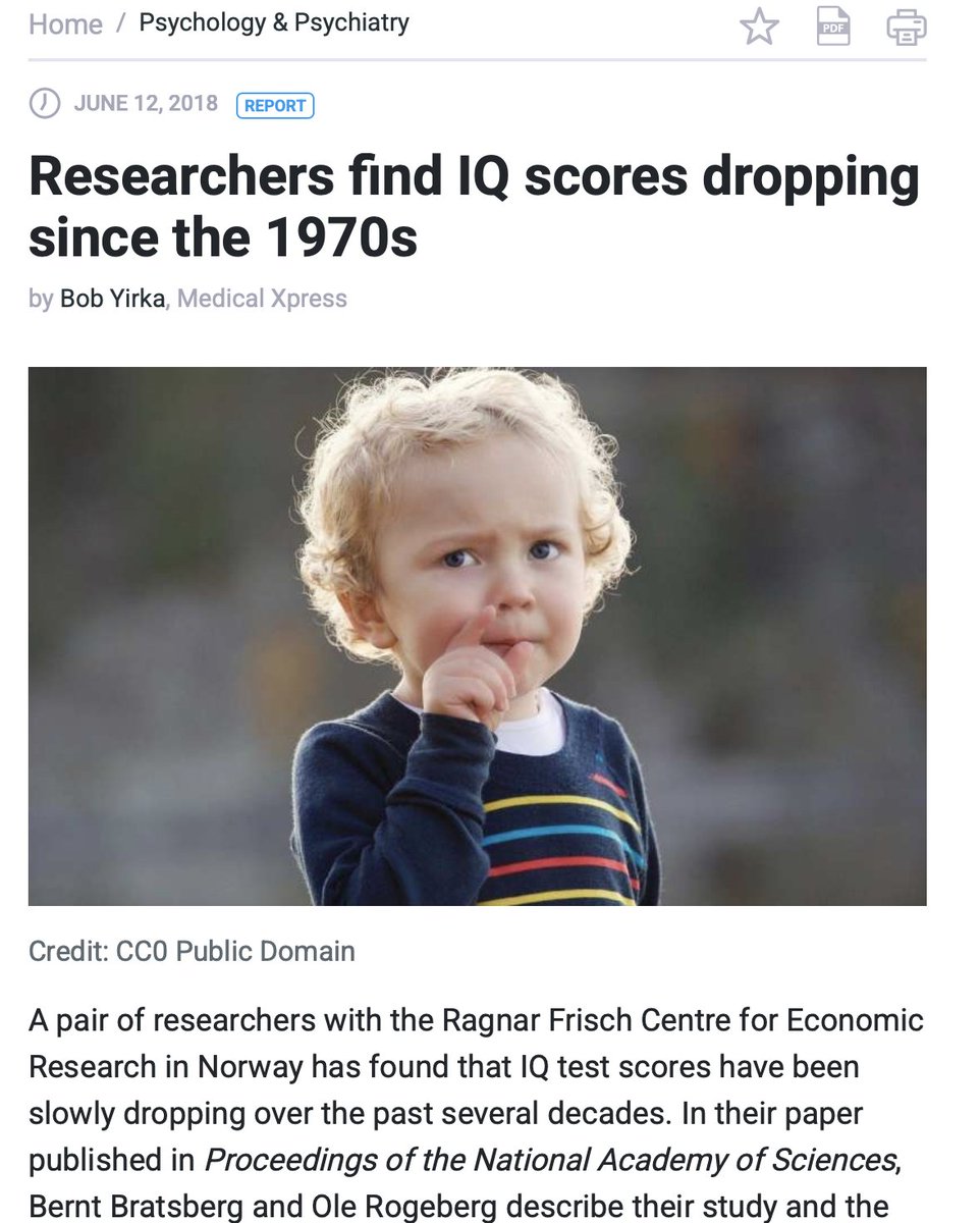 IQs have been steadily dropping since the 1970s while the gay lifestyle has increased in incidence and prevalence over the same period.