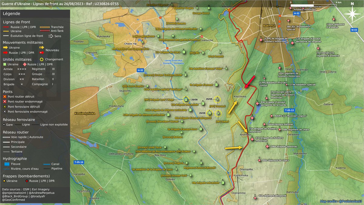 Dans le saillant sud👇, la glorieuse 3e brigade d'assaut "Azov", unité d'élite a réussi son assaut et avancé dans #Andriivka et #Klischiivka mais le gain territorial, modeste, sera consolidé plus tard