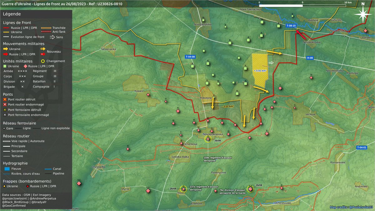 10 km2 au profit de 🇷🇺 dans les directions #Kupyansk, #Kramatorsk, #Pokrovsk, #Vuhledar👇