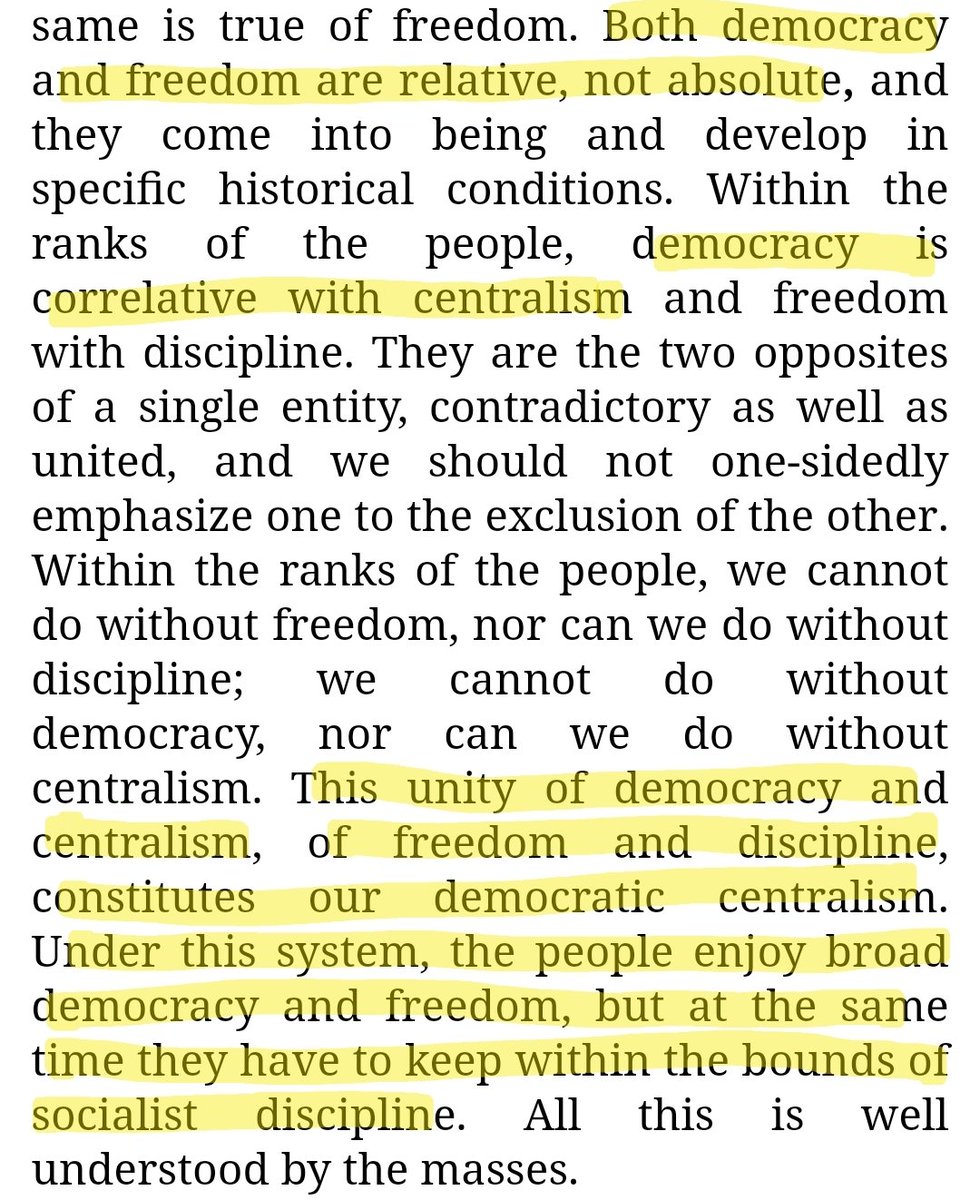 Our Democracy only works under their "democratic centralism," and to work it requires manufactured unity under "sustainable and inclusive" socialist discipline. Everyone must be held under and to this discipline or be excluded from the ranks of the people in Our Democracy.