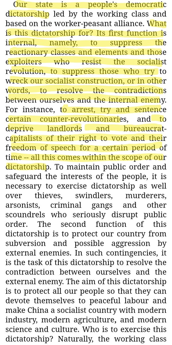 Those outside Our Democracy are subject to the People's Dictatorship, which will suppress them, arrest, try, and sentence certain of their counter-revolutionaries (Trump and his lawyers), deprive enemy classes of their votes and freedom of speech.