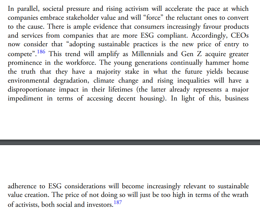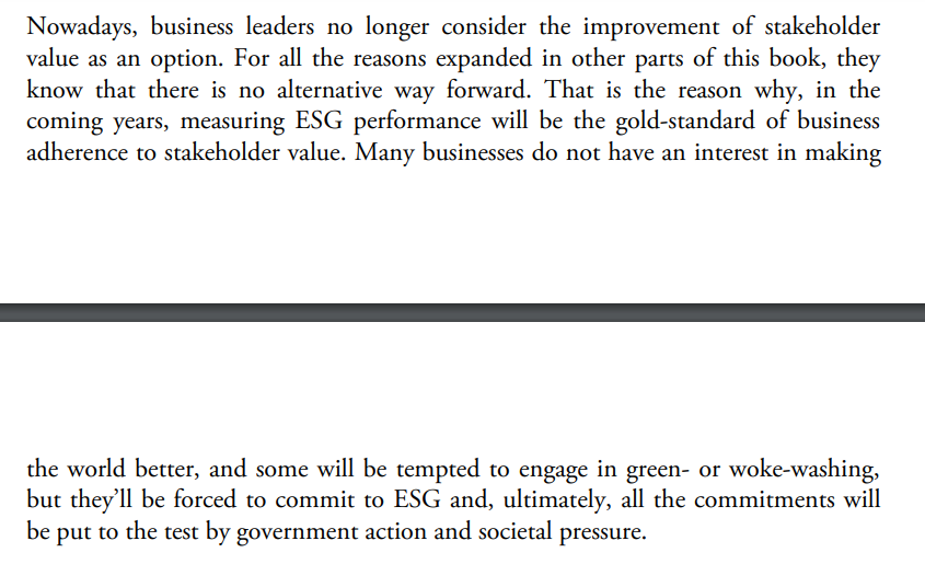 The logic there is that you can't maximize shareholder value (fiduciary duty) in the ESG economy unless you play ball with ESG. That's obviously cartel logic that operates in a financial racketeering environment that's probably illegal, but it's a lot of leverage.