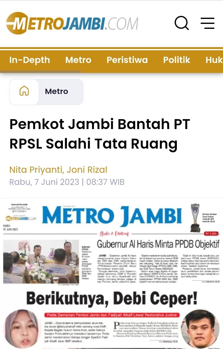 Tentang PT RPSL yg penuh masalah tapi selalu dibela mati2an oleh Pemkot Jambi itu sudah banyak beritanya bisa dicari di google. Salah satunya ini, Pemkot Jambi membabi-buta bilang PT RPSL bukan berada di Ruang Terbuka Hijau tapi faktanya ada di RTH.