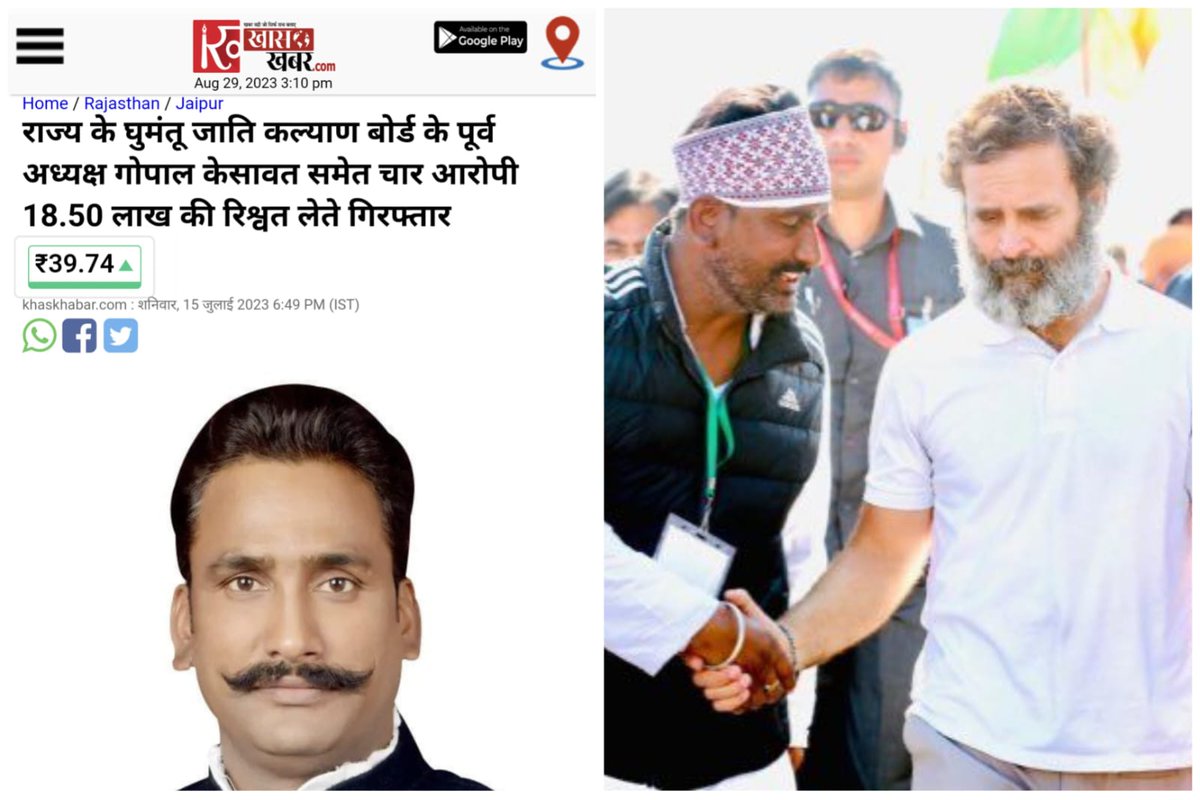 Anti-corruption bureau (ACB) arrested Gopal Kesawat, A Senior Congress Leader from Rajasthan, on charges of accepting a ₹7.5 lakh bribe from a candidate in a Rajasthan Public Service Commission (RPSC) exam.
