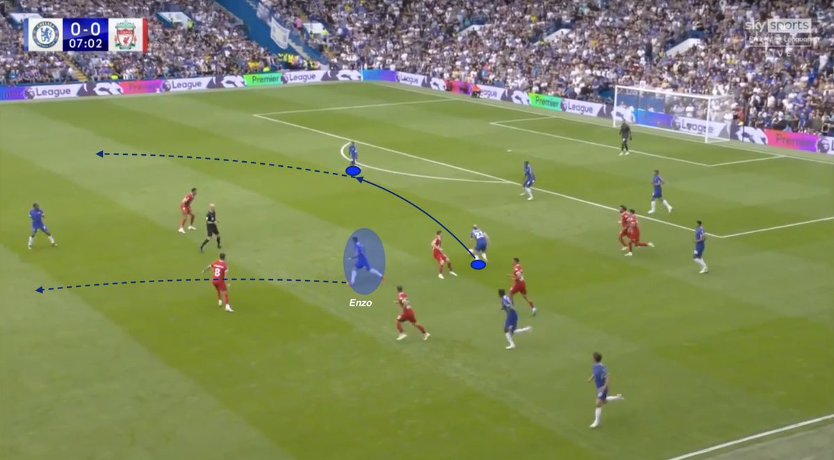First, when Enzo is on the center. His press resistance is precious especially to counter Liverpool’s strong counter-pressing.