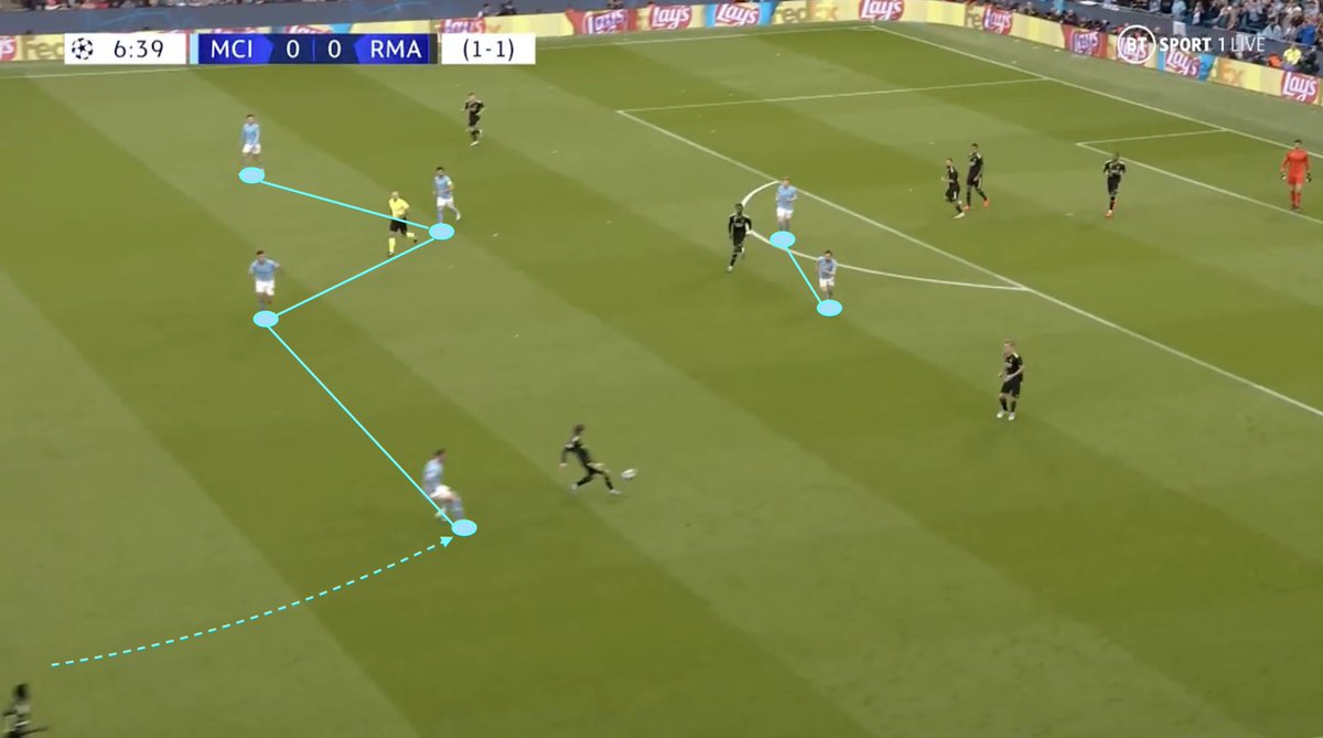 Having in mind this particularity, City’s aggressive press had the objective to literally annihilate any turn around from Madrid creative players, so they can not find Vinicius or Rodrygo.