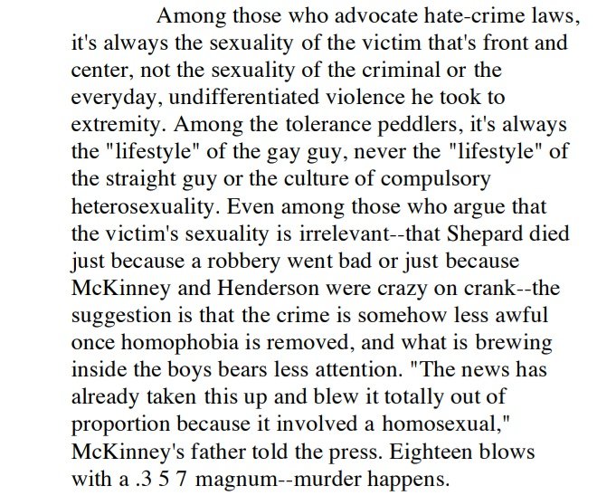 I did read Wypijevski's article cited here, and while it's far better and makes some interesting points, it's basically trying to humanise the killers (and at points, justify them, such as by implying the real motive was class, or that hate crime laws don't center perpetrators)