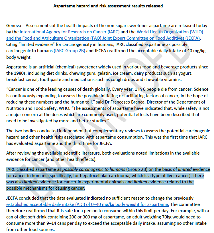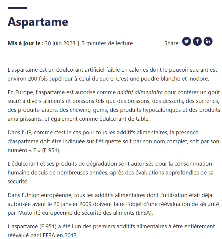 L’#aspartame, faux sucre présent dans des dizaines de produits consommés quotidiennement en France et dans le monde, a été classé ce vendredi "possiblement cancérogène" par le Centre international de recherche sur le cancer.