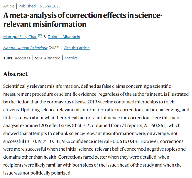 Tout scientifique/journaliste s’est déjà posé cette question: est-ce vraiment efficace de fact-checker des propos trompeurs, voire carrément faux? Convainc-t-on vraiment des gens qui ne l’étaient pas déjà?