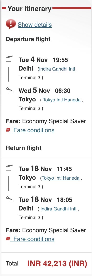 For example, Delhi to Hong Kong with Cathay Pacific (economy):