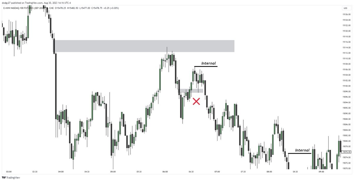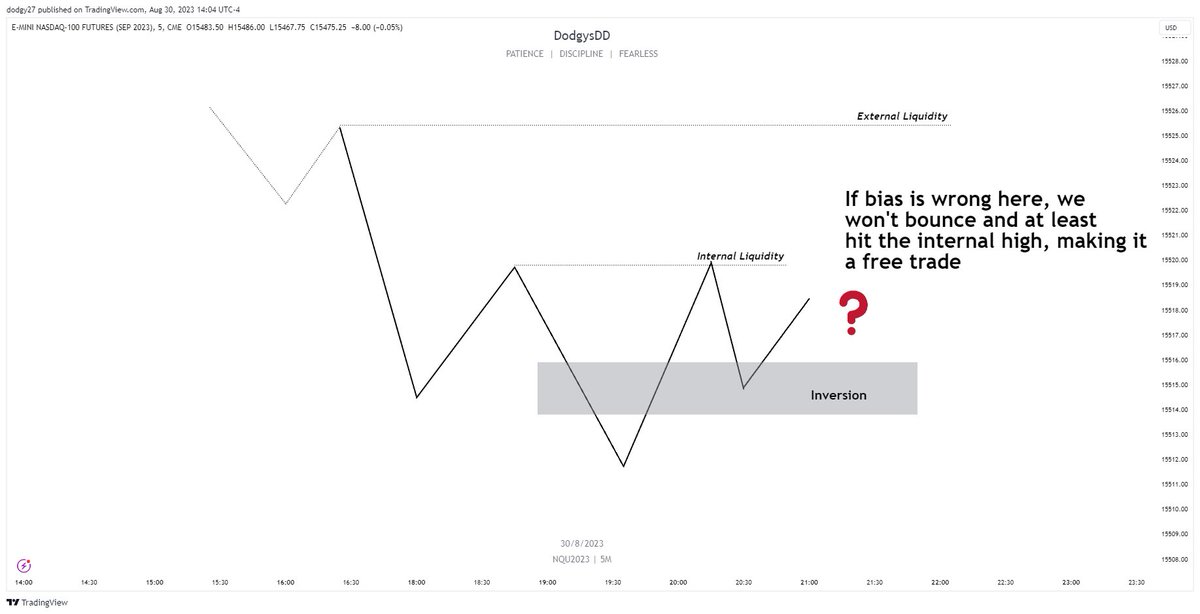 This is the inverse where we have NOT hit internal liquidity and we KNOW the market has to go to the next internal liquidity (high in this case) even if bias iswrong