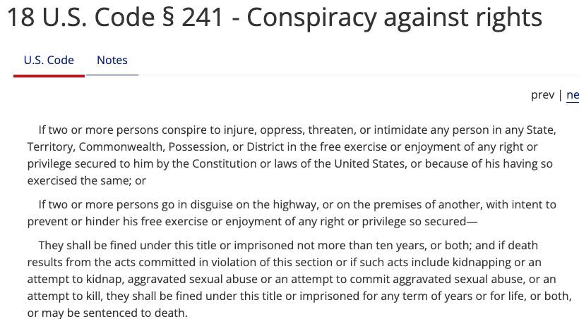 This is the same law that the DOJ used to convict Douglass Mackey for posting memes, and the same law that Jack Smith used to indict President Trump for “depriving people of their right to vote.”
