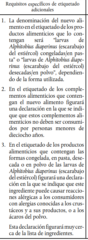 En el caso de los escarabajos, estos son los requisitos que el Reglamento obliga a incluir: 3/5