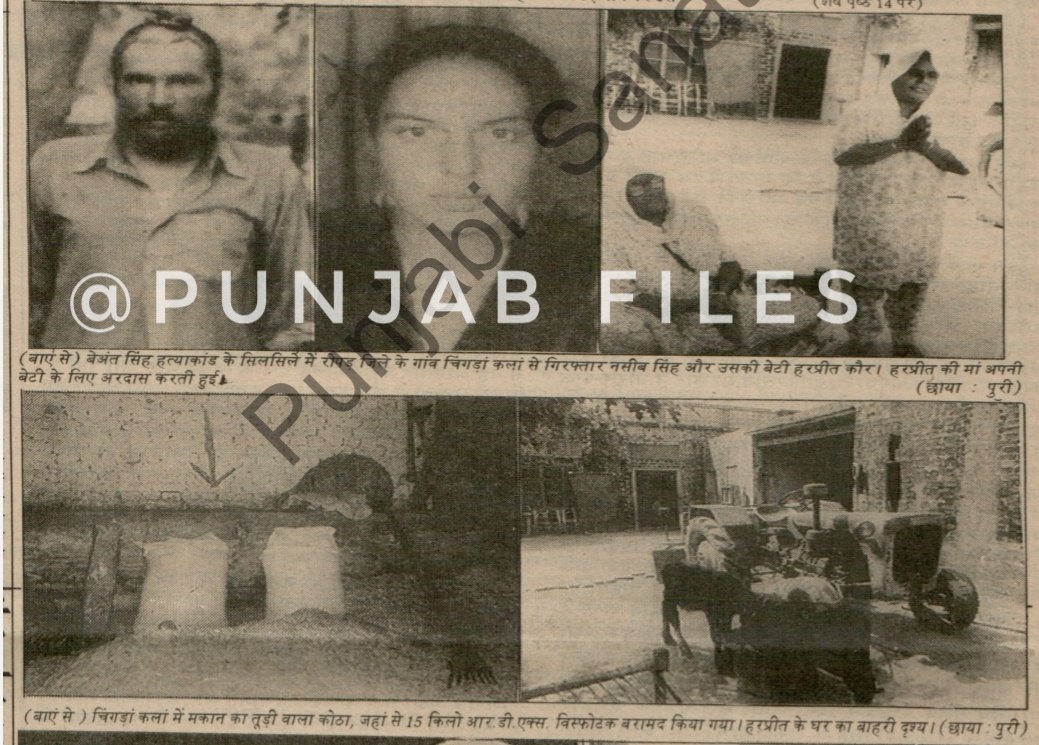 On September 19, 1995, police arrested a duo of father and daughter, Naseeb Singh and Harpreet Kaur (18 years old), in connection with hiding the explosion. 15 kg of RDX were recovered at their home.