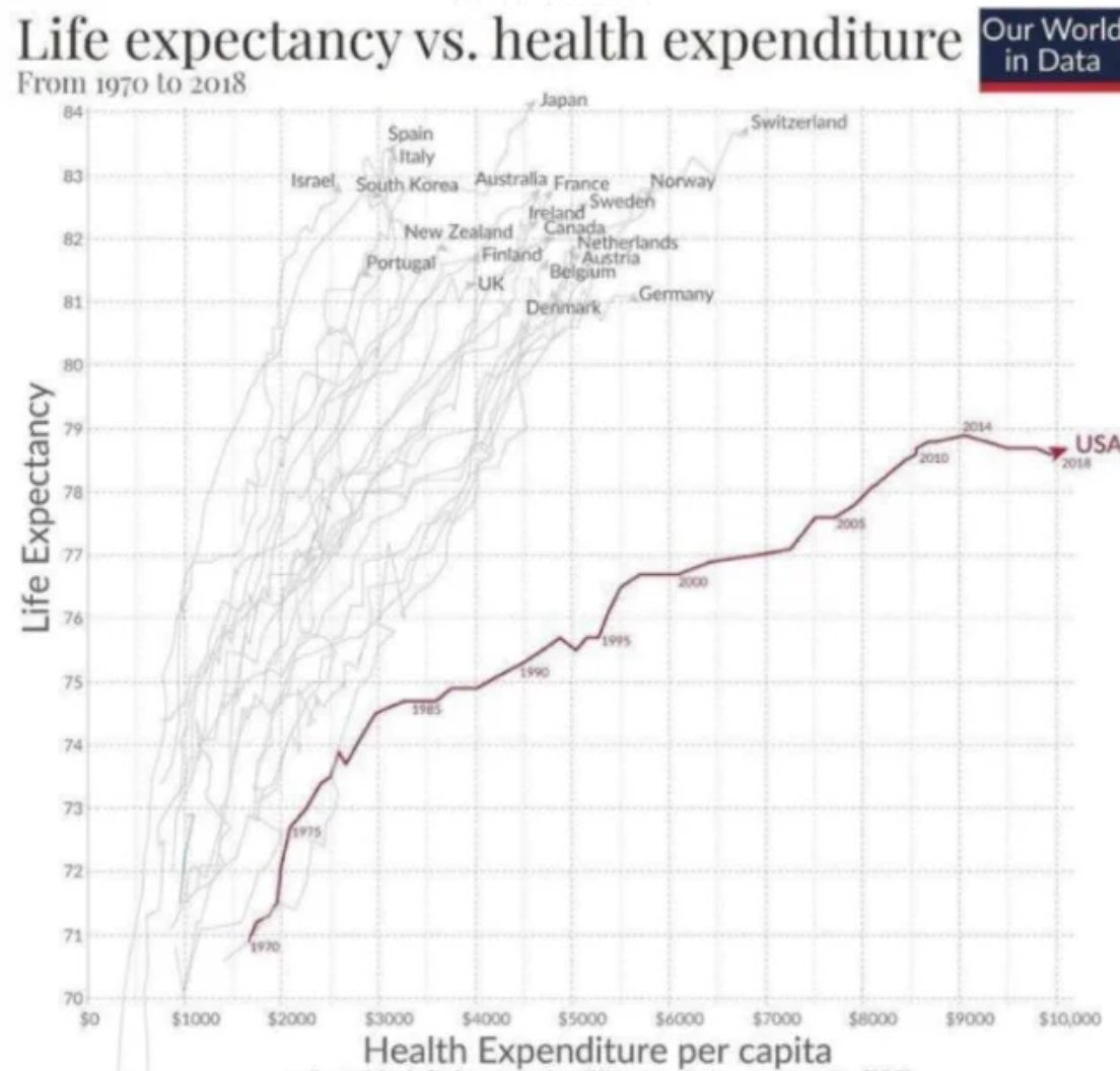 America spends 15% of its GDP on healthcare, which should be really called “sick care.” It is focused not on cure, but only on symptoms, thus creating repeat customers. There is no cure for cancer, diabetes, autism, asthma, or even flu.