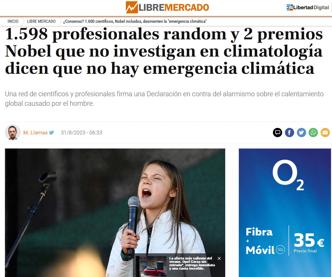 Yo te cambiaría el título del artículo por "1598 profesionales random y 2 premios Nobel que no investigan en climatología dicen que no hay emergencia climática".