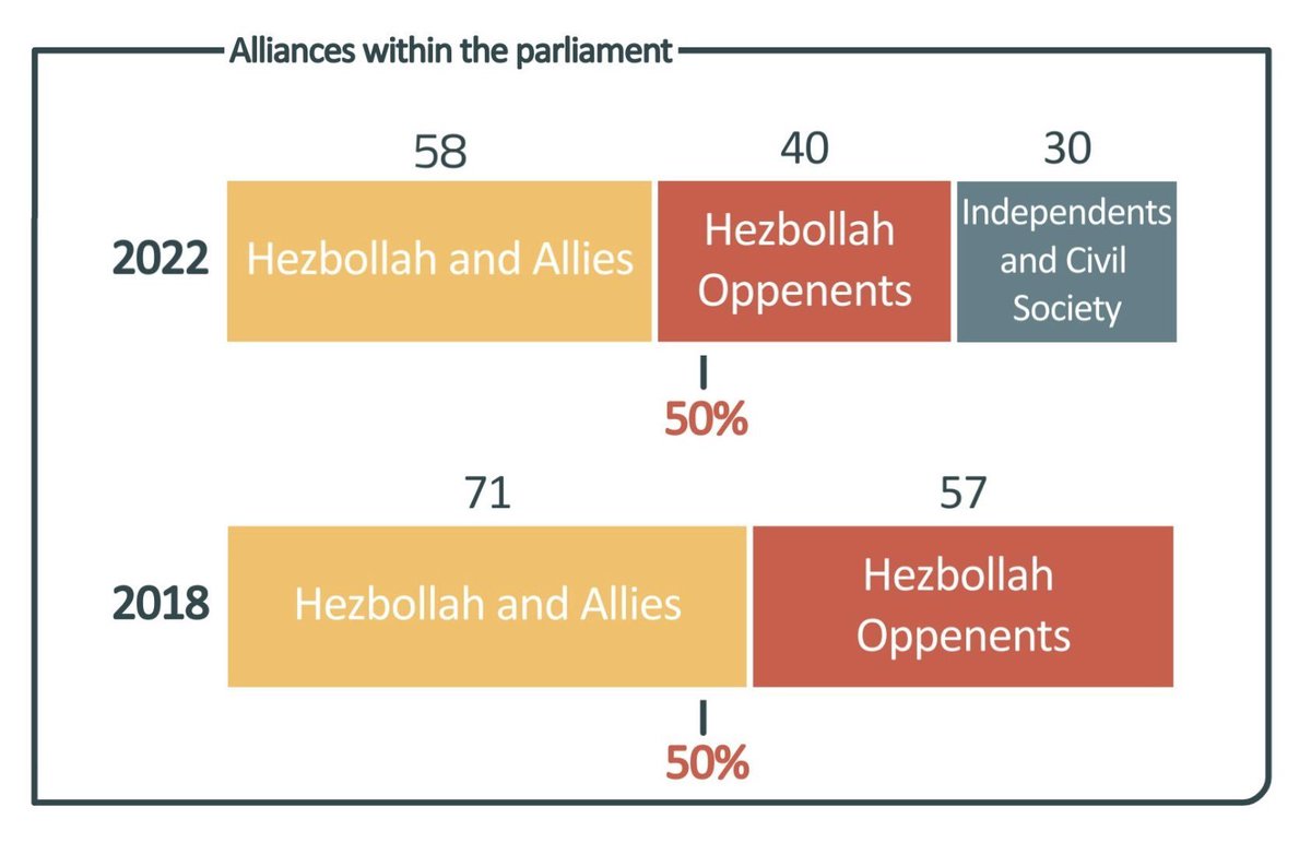 גוש חזבאללה והמפלגות שתומכות בו, איבדו את הרוב בפרלמנט. גם לצד הנגדי לא היה רוב. בהיעדר רוב הפוליטיקה הלבנונית נכנסה לשיתוק מוחלט.