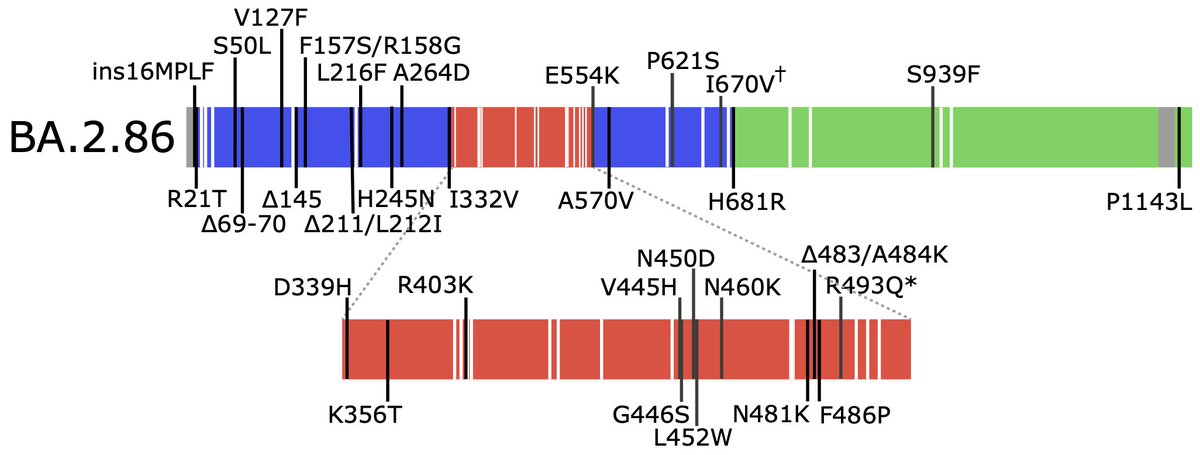Overall, it doesn't appear to be nearly as extreme a situation as the original emergence of Omicron. It isn't yet clear whether BA.2.86 (or its offspring) will outcompete the currently-circulating variants, and I don't think there is yet any data about its severity, but...