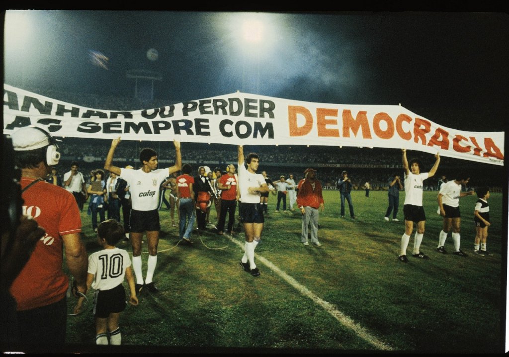...e a "Democracia Corintiana", um dos exemplos mais representativos de movimentos políticos-desportivos e da instrumentalização da paixão popular na luta contra a ditadura militar.