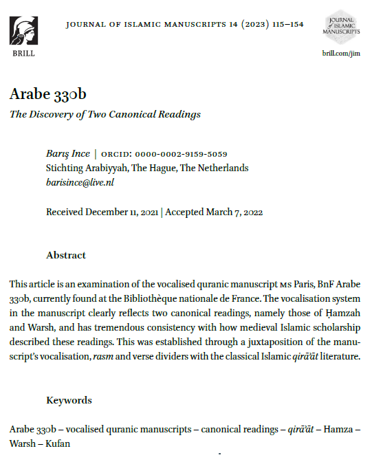 The one that I'm most excited about is the article by an old student of mine, Barış İnce, who studies this manuscript, Arabe 330b, for his fantastic BA thesis. I told him to turn it into an article and he did.